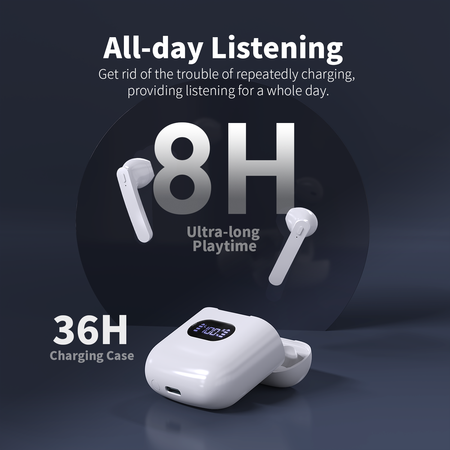 The shape of headset perfectly fits the curve of inner contour of ear, ensures you a fatigue-free listening experience no matter how long you use it. And secure fit that doesn’t protrude from your ears especially for Sports, Workout, Gym.
