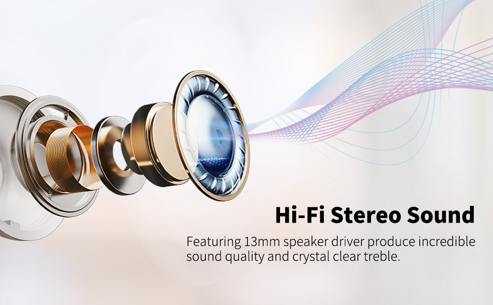 - True Wireless Stereo Earbuds: Bluetooth earbuds come with 13mm vibrating diaphragm and HD rendering technology produce incredible sound quality with crystal crisp treble. Enjoy your music everywhere even in a loud environment.